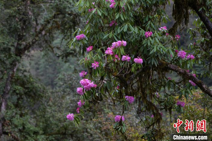 4月3日,西藏自治區(qū)林芝市波密縣野生杜鵑盛放,漫山遍野,匯成夢幻花海。這里品種多樣,有波密杜鵑、淡鐘杜鵑等?;ǘ渖世_紛,粉紅嬌俏、玫紅熱烈、朱紅明艷、淺紫神秘。它們廣泛分布于山坡、河谷、森林,與雪山、溪流相互映襯,勾勒出絢麗的春日盛景 。中新社記者 貢嘎來松 攝