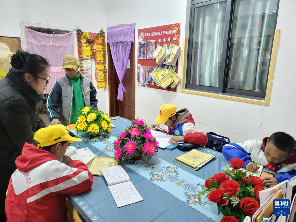 2025年3月17日,周雪在兒童福利院與放學(xué)回去的孩子談心,了解他們?cè)趯W(xué)校的情況。(受訪(fǎng)者供圖)