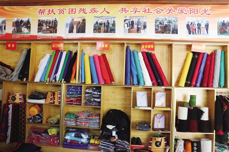 縫紉機嗡嗡作響的車間里,肢體殘疾的裁縫巴桑達瓦正專注地將兩片藏青色布料推入壓腳,動作嫻熟。在扎囊縣扶貧助殘服飾加工有限責任公司的陽光工坊內,38名和巴桑達瓦一樣的殘疾員工用雙手編織著屬于自己的“春天”。