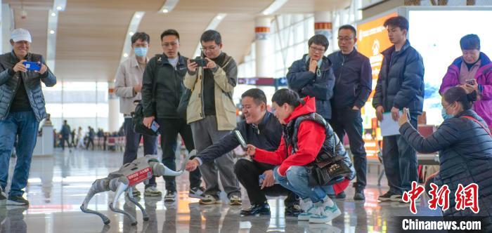 圖為在林芝,國家安全宣傳機器狗與群眾互動。靜瀾 攝
