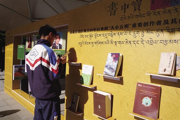 拉薩某學(xué)校學(xué)生在活動(dòng)現(xiàn)場(chǎng)閱讀書籍。記者 余書冉