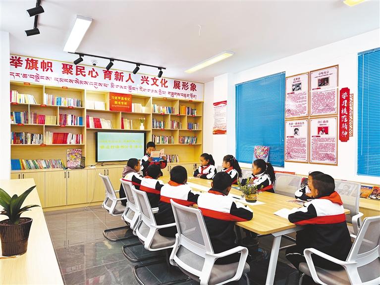 圖為孩子們?cè)诤_(dá)村農(nóng)家書屋分享閱讀心得。記者 扎西頓珠 攝