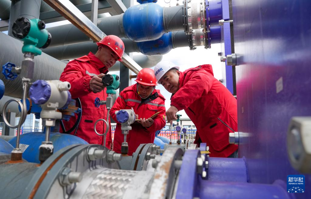 4月26日,西藏錦杭新能源有限責(zé)任公司工作人員在檢查換熱站運行工況。新華社記者 晉美多吉 攝