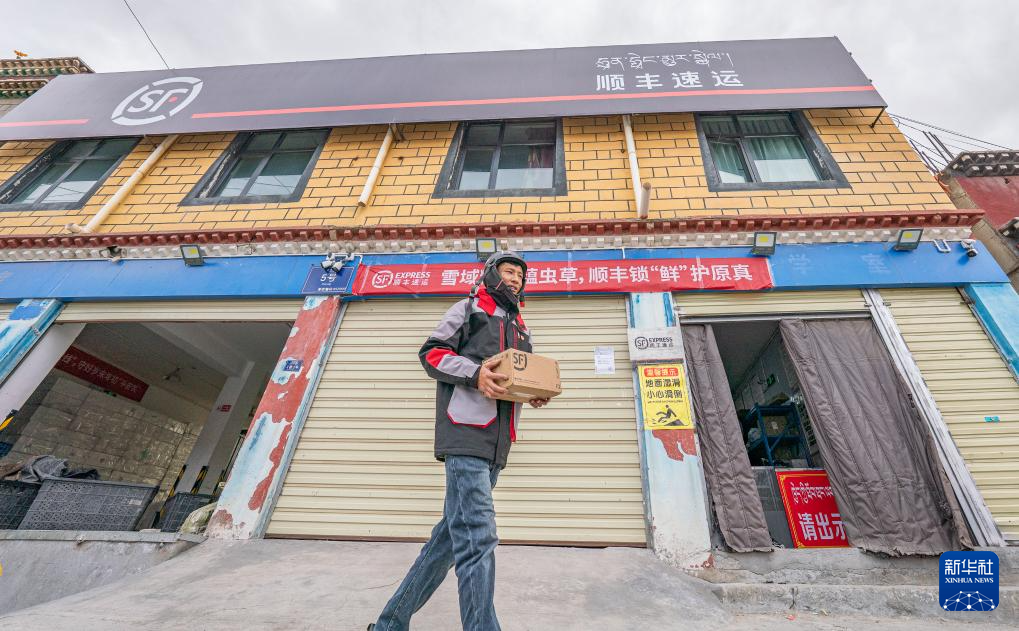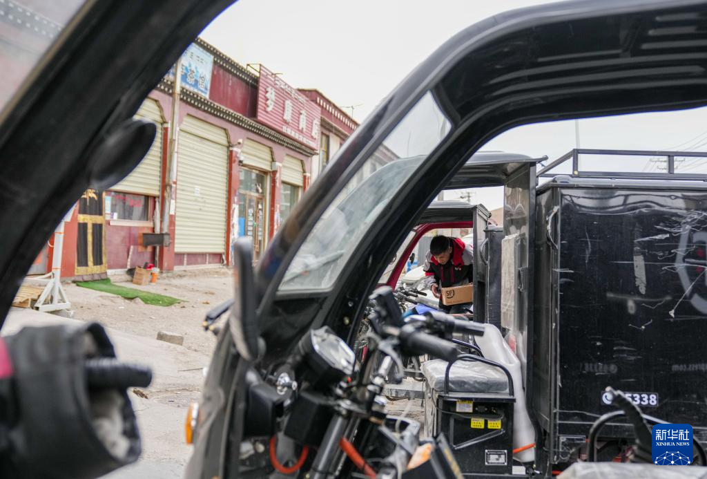 拉巴走出站點準備去派件(4月24日攝)。新華社記者 丁增尼達 攝