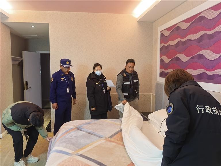 文旅部門對酒店進行檢查。 圖片由自治區(qū)文旅廳執(zhí)法監(jiān)督處提供