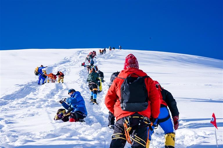 一位山友激動地分享道:“這次攀登充滿挑戰(zhàn),尤其是粉雪路段和暗冰,讓我一度心生緊張。但有專業(yè)的教練和后勤保障,我心里就有了底。一步步堅持下來,最終成功登頂,這種成就感難以言表!”