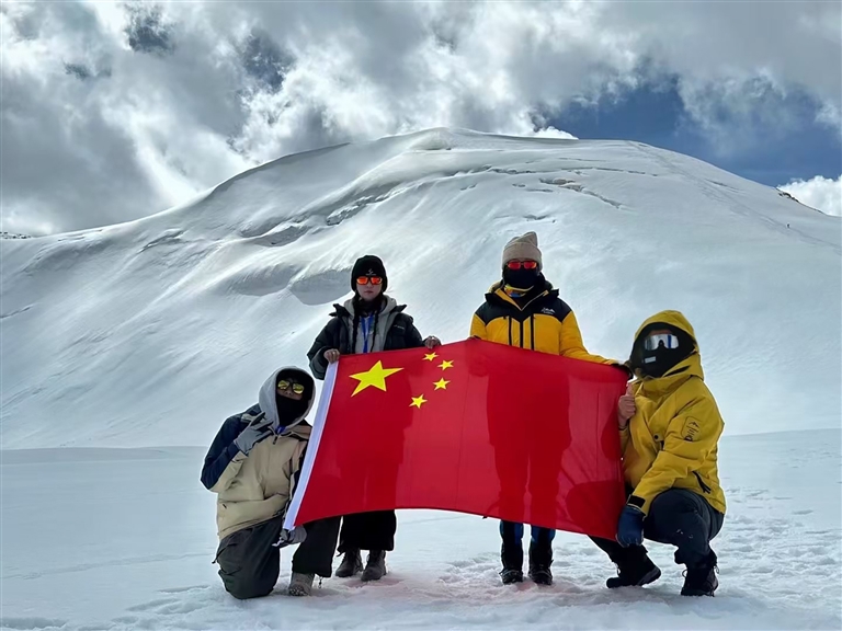 鄒師思告訴記者:“登山過程中,我們團隊展現(xiàn)了高度的專業(yè)性與協(xié)作力。學(xué)院領(lǐng)導(dǎo)提前提供物資與精神支持,專業(yè)教練指導(dǎo)徒步與技術(shù)訓(xùn)練。在海拔5500—6000米段,隊伍統(tǒng)一行軍節(jié)奏,避免體溫流失或體力透支;登頂時,訓(xùn)練突出者率先觸頂,為體力較弱者提供鼓勵與幫助。”她感慨:“團隊協(xié)作是登頂?shù)年P(guān)鍵,真正的勇氣源于科學(xué)準(zhǔn)備與戰(zhàn)略堅持?!?/p>