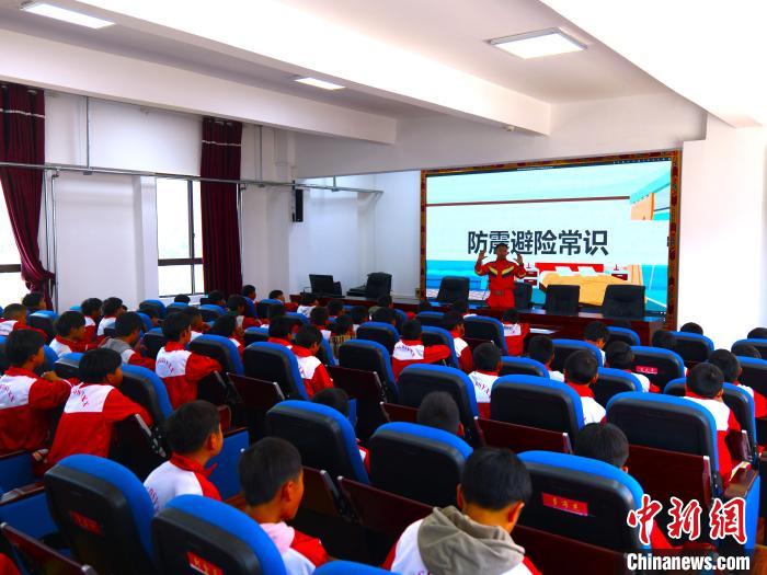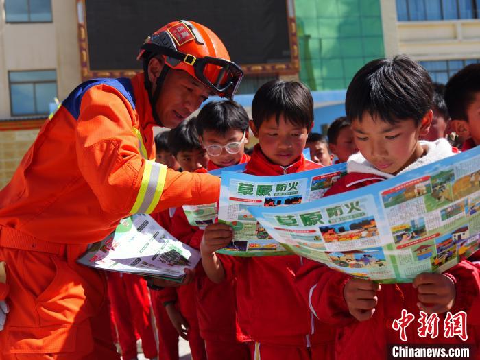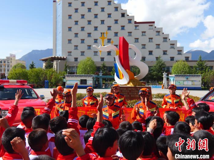 圖為消防救援人員組織學(xué)生進(jìn)行防災(zāi)減災(zāi)知識互動。林芝森林消防支隊(duì)供圖