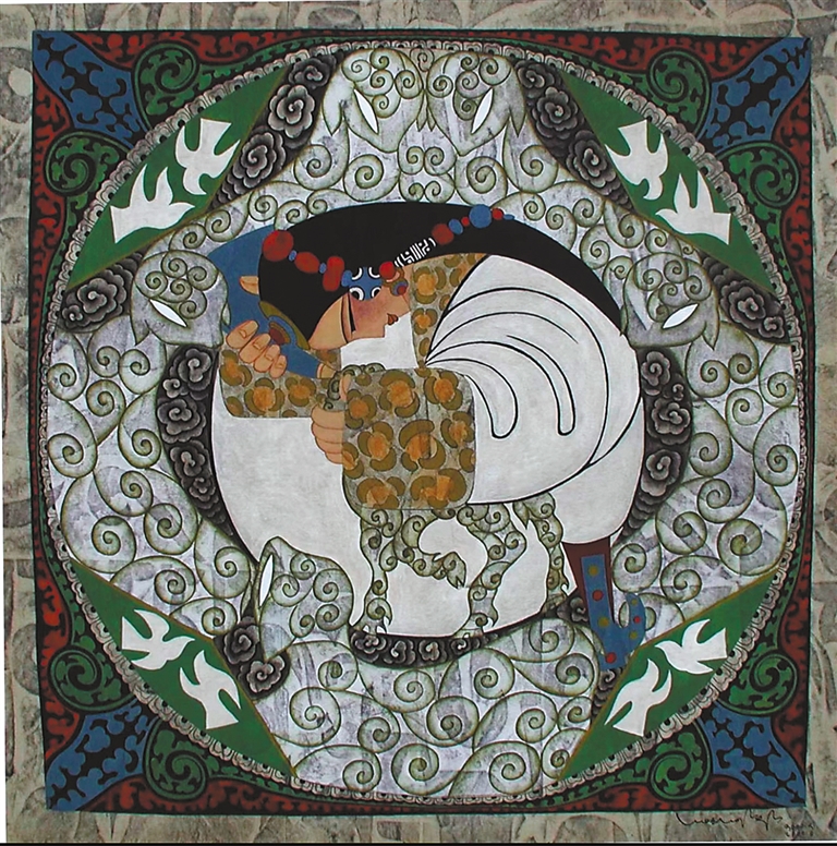 1983年,命運(yùn)的轉(zhuǎn)機(jī)再次降臨。西藏文化部門編纂《西藏舞蹈集成》,急需插圖畫家,“會(huì)畫畫的舞者”昂桑被借調(diào),并派至蘇州培訓(xùn)。這段脫離舞蹈訓(xùn)練的經(jīng)歷,讓他明確內(nèi)心方向。1985年,他考入西藏大學(xué)藝術(shù)系,成為唐卡大師丹巴繞旦首批弟子,在導(dǎo)師的指導(dǎo)下,他觸摸到千年礦物顏料的細(xì)膩,領(lǐng)悟了傳統(tǒng)藝術(shù)的精神內(nèi)核。