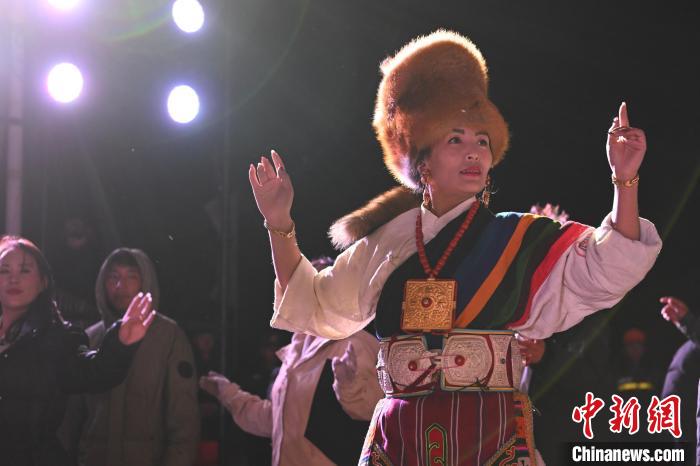 圖為“情定當(dāng)雄”篝火鍋莊晚會(huì)文藝演出現(xiàn)場。中新社記者 貢嘎來松 攝