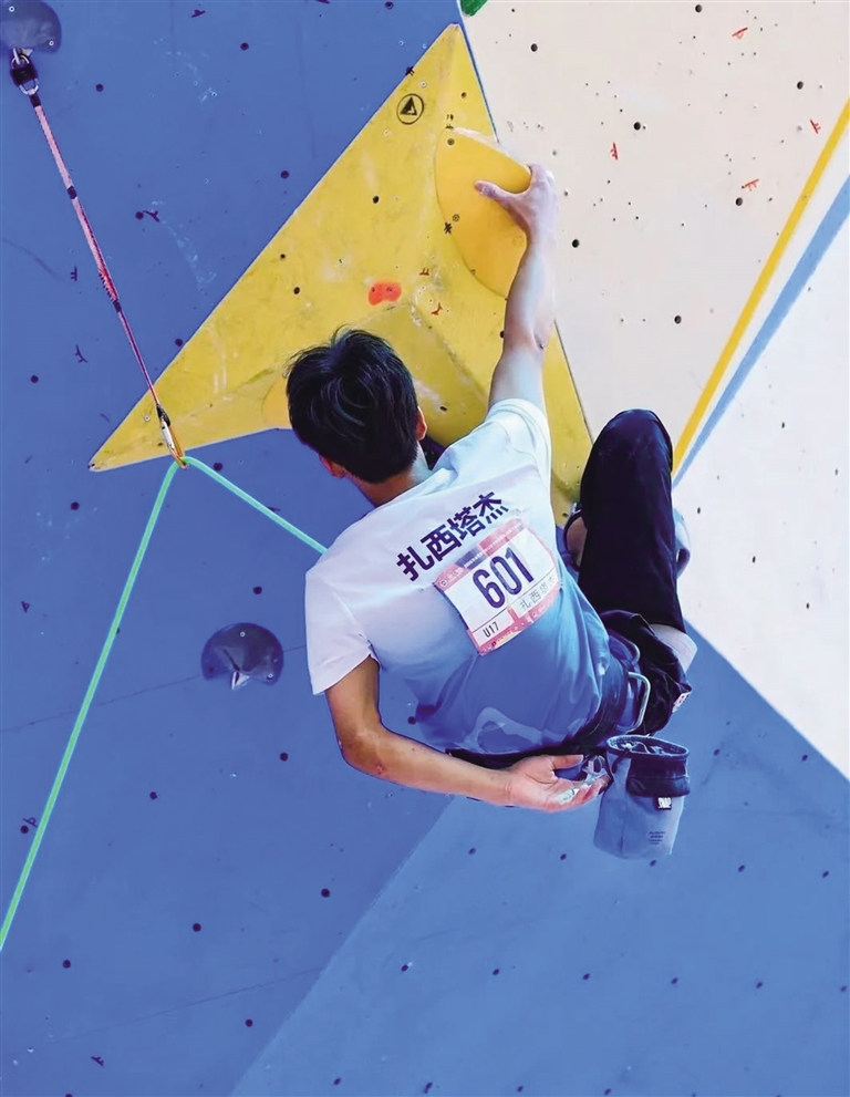 扎西塔杰進(jìn)行攀石比賽。自治區(qū)體育局供圖