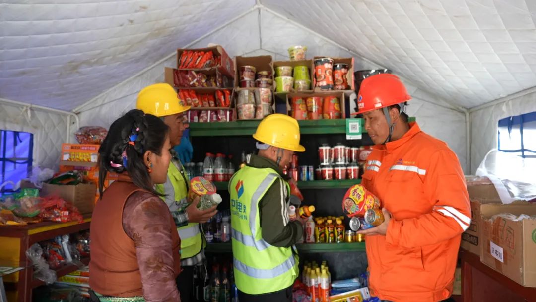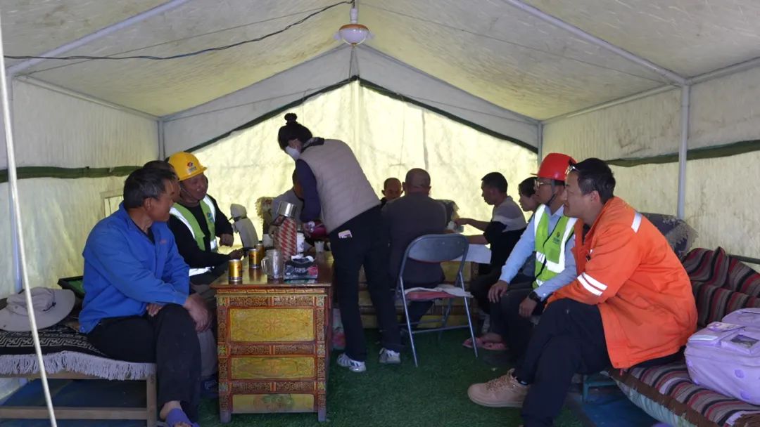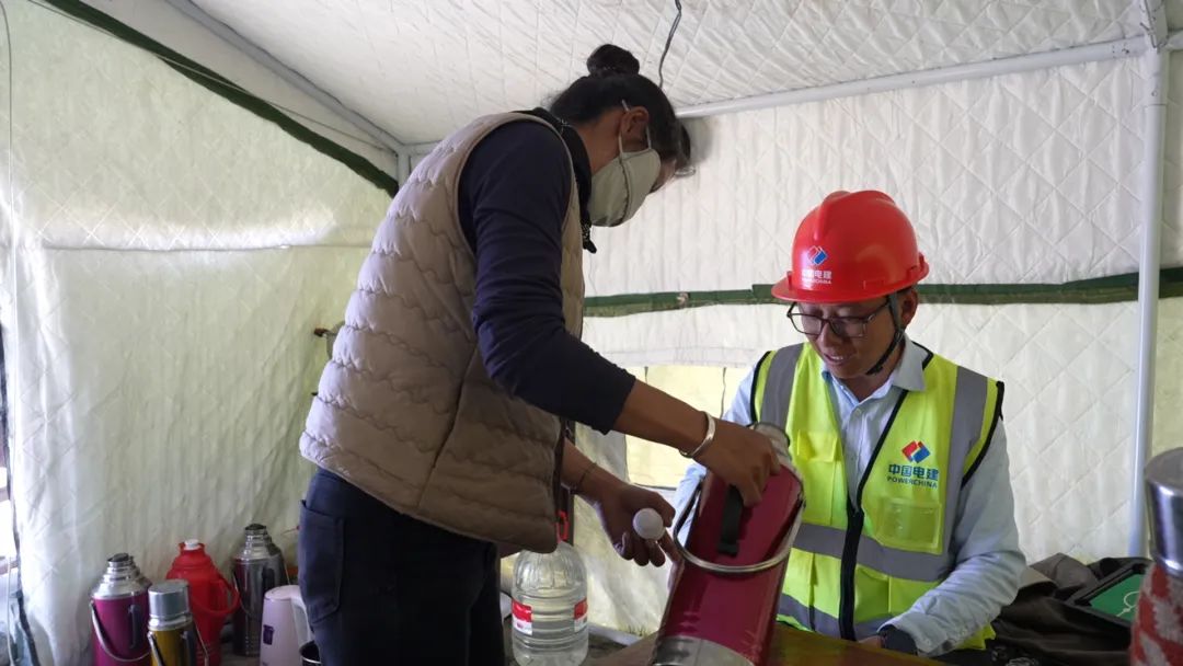 茶館主人巴桑,是村里有名的熱心人??粗┕と藛T為重建家園奔波,采購(gòu)物資不便,她果斷在項(xiàng)目部生活區(qū)旁開起小賣鋪。與工人們熟絡(luò)后,她又搬來桌椅,搭起簡(jiǎn)易帳篷茶館,只為給異鄉(xiāng)人一個(gè)歇腳放松之處。