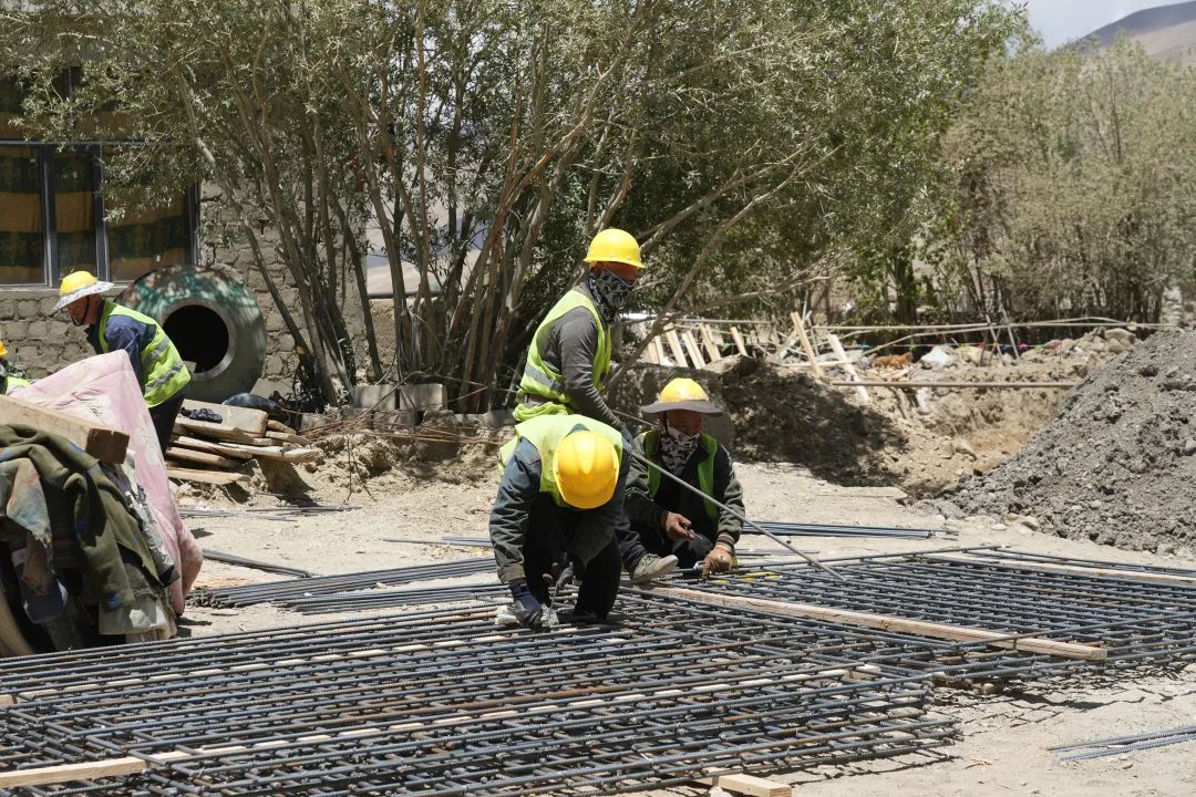 當(dāng)夜幕籠罩村莊,大風(fēng)呼嘯,旺加仍未歸家。他戴上安全帽,出現(xiàn)在燈火通明的工地。機(jī)械轟鳴,人聲交織。旺加仔細(xì)巡視基坑、鋼筋,履行監(jiān)督之責(zé);順手遞工具,用帶著藏語(yǔ)腔調(diào)的漢語(yǔ)講著接地氣的笑話驅(qū)散疲憊。
