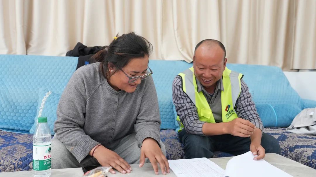 飯后,大家迅速投入工作,“拉巴家的房子地圈梁模板做完了嗎?”普布普尺邊詢問,邊認(rèn)真記錄。祝波耐心細(xì)致地介紹每一戶的施工情況。這個(gè)00后的小姑娘,在近幾個(gè)月與祝波的相處中,能力不斷提升,兩人在工作中配合默契,宛如老搭檔。