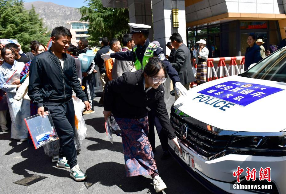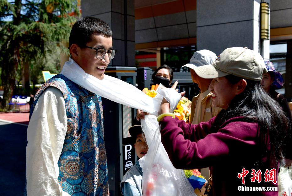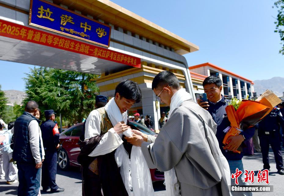6月9日,西藏拉薩江蘇實驗中學(xué)考點外親友為考生送上哈達(dá)。當(dāng)日,西藏自治區(qū)2025年普通高考完成所有科目考試,2025年西藏高考落下帷幕。中新社記者 貢嘎來松 攝