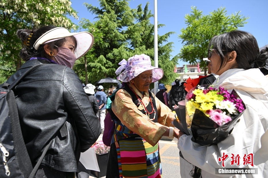 6月9日,西藏拉薩江蘇實驗中學(xué)考點外親友為考生送鮮花。當(dāng)日,西藏自治區(qū)2025年普通高考完成所有科目考試,2025年西藏高考落下帷幕。中新社記者 貢嘎來松 攝