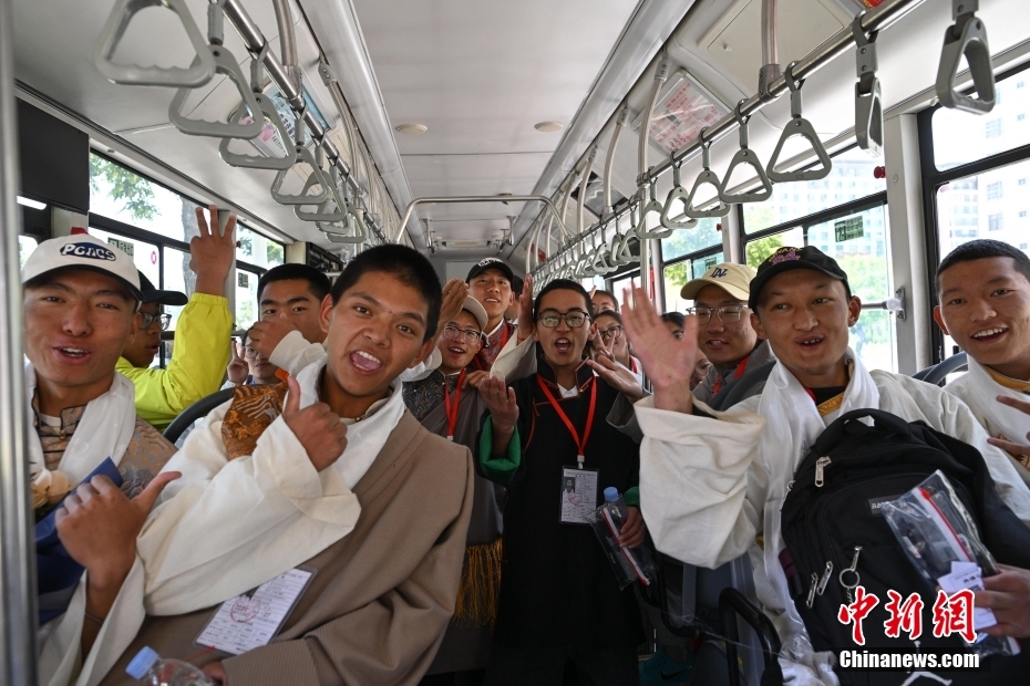6月9日,考生們結(jié)束考試,準(zhǔn)備乘車離開西藏拉薩江蘇實驗中學(xué)考點。當(dāng)日,西藏自治區(qū)2025年普通高考完成所有科目考試,2025年西藏高考落下帷幕。中新社記者 貢嘎來松 攝