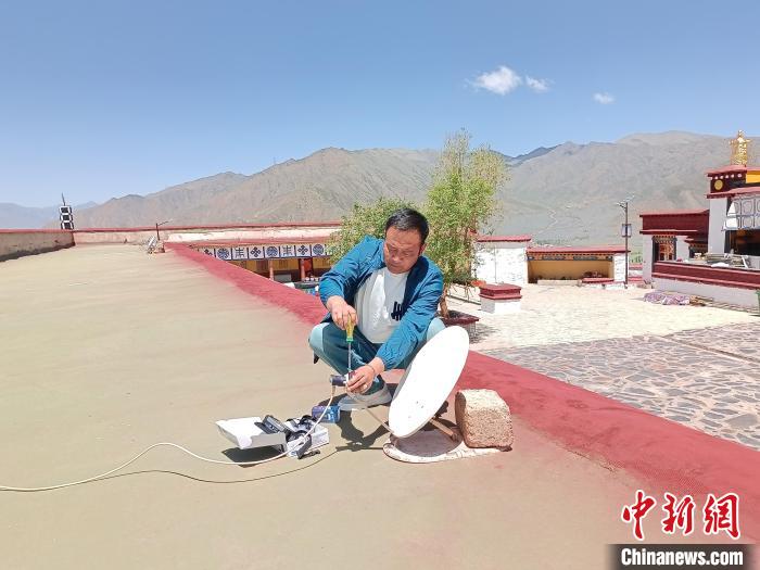 圖為工作人員正在安裝直播衛(wèi)星戶(hù)戶(hù)通設(shè)備。達(dá)孜區(qū)委宣傳部供圖