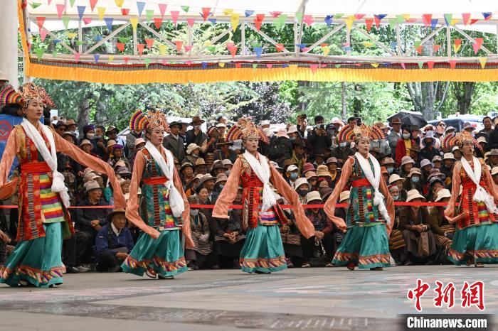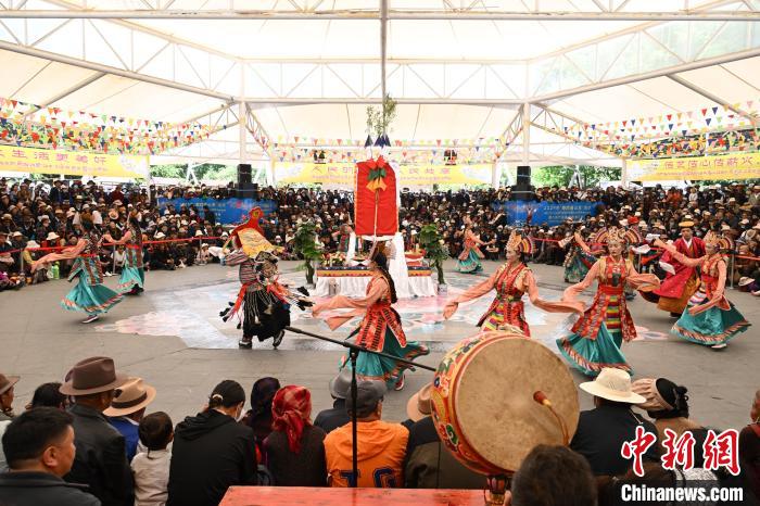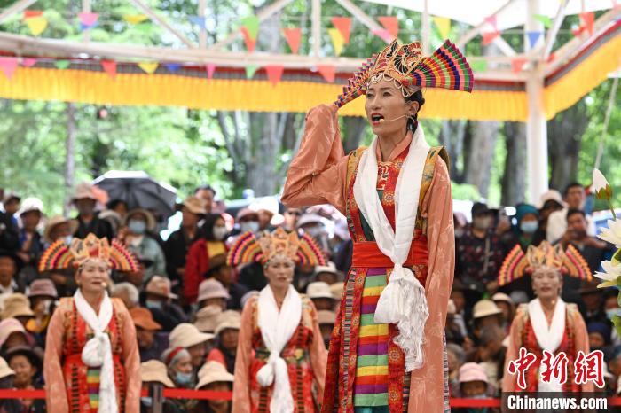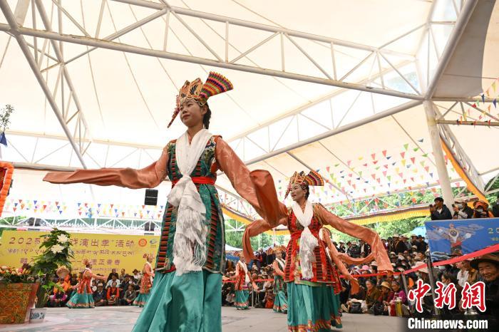圖為藏戲《智美更登》表演現(xiàn)場。中新社記者 貢嘎來松 攝