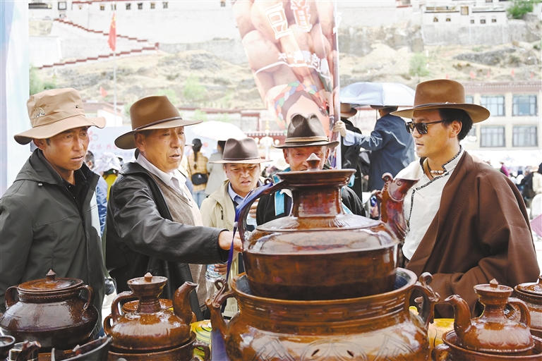在欣賞視聽盛宴的同時(shí),國家級(jí)非遺項(xiàng)目江孜卡墊織造技藝、自治區(qū)級(jí)非遺項(xiàng)目牛村陶器制作技藝、市級(jí)非遺項(xiàng)目恰哇編織技藝等50個(gè)非遺項(xiàng)目,以及民族手工業(yè)產(chǎn)品、南木林縣縣級(jí)非遺產(chǎn)品集中展覽展銷,備受消費(fèi)者青睞。各非遺產(chǎn)品展銷點(diǎn)收入不斷、訂單不斷,經(jīng)初步統(tǒng)計(jì),活動(dòng)現(xiàn)場非遺產(chǎn)品銷售總額達(dá)45萬余元。