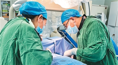 達(dá)娃次仁(右一)正在做起搏器植入術(shù)。西藏自治區(qū)人民醫(yī)院供圖