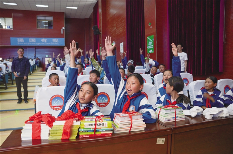 為慶祝中國共產(chǎn)黨成立104周年,迎接西藏自治區(qū)成立60周年,近日,自治區(qū)黨委宣傳部聯(lián)合自治區(qū)教育廳在達(dá)孜區(qū)中心小學(xué)開展“護(hù)苗2025·綠書簽”進(jìn)校園誦讀經(jīng)典活動(dòng)。