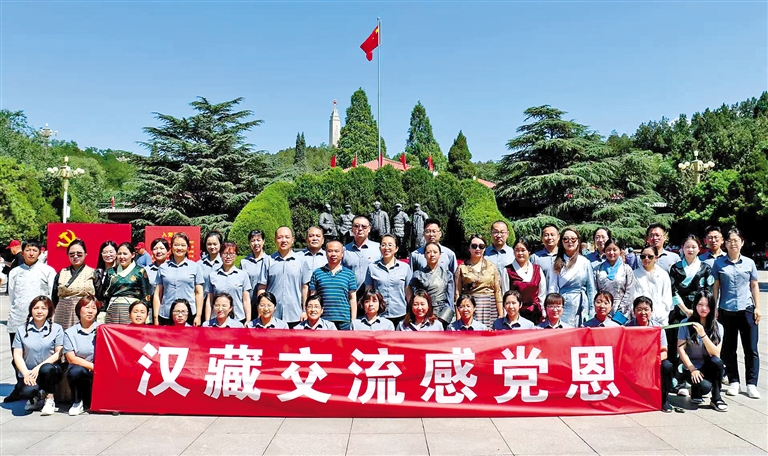 札達(dá)縣教師交流團(tuán)與石家莊市61中黨支部在西柏坡舉行黨日活動。河北省第十批援藏工作隊(duì)供圖