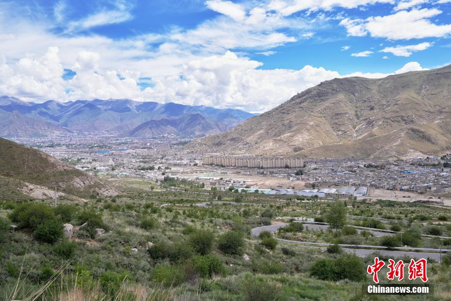 7月16日,從西藏拉薩娘熱溝遠(yuǎn)眺,南北山的綠色植被環(huán)抱拉薩城區(qū)。據(jù)了解,拉薩南北山綠化工程于2021年啟動(dòng),東起墨竹工卡縣尼瑪江熱鄉(xiāng),西至曲水縣茶巴拉鄉(xiāng),東西綿延近200公里,計(jì)劃完成國土綠化面積206.72萬畝,助力拉薩成為生態(tài)宜居的高原首府城市。中新社記者 張祥毅 攝