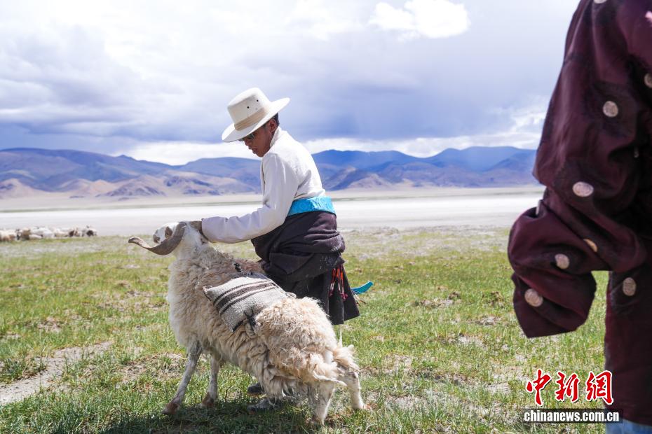 7月20日,在西藏阿里地區(qū)革吉縣鹽湖鄉(xiāng),牧民從羊群中牽引一只將要馱負鹽袋的羊。一千多年前,阿里地區(qū)有50多家駐扎的鹽幫,將自然鹽用羊馱牛背邊放牧邊運輸?shù)姆绞?,運送到普蘭、日喀則、印度、尼泊爾等地,并用以物易物的方式換回青稞、磚茶、布料等日常生活所需的物品,從而孕育了遠負盛名的“鹽羊古道”傳奇。近年來,當?shù)亻_辦粗鹽巴加工廠、打造“鹽羊古道”旅游品牌等方式,使千年“鹽羊古道”煥發(fā)新生機。中新社記者 張祥毅 攝