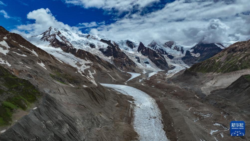 空中俯瞰祥格拉冰川(7月20日攝,無(wú)人機(jī)照片)。新華社記者 晉美多吉 攝