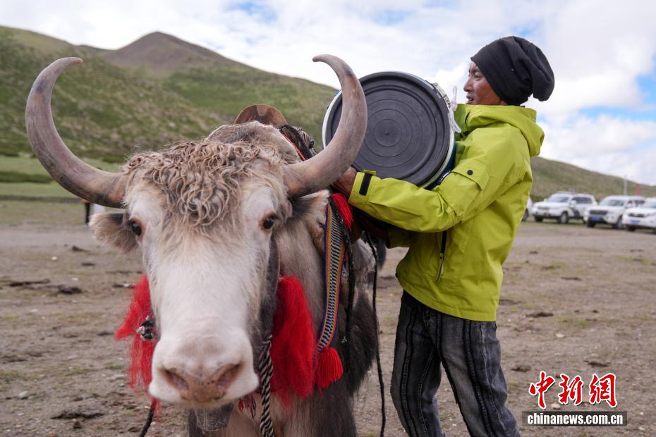 7月21日,在岡仁波齊山腳下,牦牛運(yùn)輸隊(duì)隊(duì)員往牦牛背上綁縛物資,準(zhǔn)備將其運(yùn)輸至轉(zhuǎn)山徒步路線的補(bǔ)給站。岡仁波齊位于西藏阿里地區(qū)普蘭縣境內(nèi),是岡底斯山的主峰,也是藏傳佛教的神山之一,每年吸引眾多信徒前往轉(zhuǎn)山,并衍生出徒步旅行的經(jīng)典路線。每年來(lái)自國(guó)內(nèi)外的徒步旅行者為當(dāng)?shù)貏?chuàng)造就業(yè)機(jī)會(huì)的同時(shí),也推動(dòng)了文旅產(chǎn)業(yè)的發(fā)展。中新社記者 張祥毅 攝
