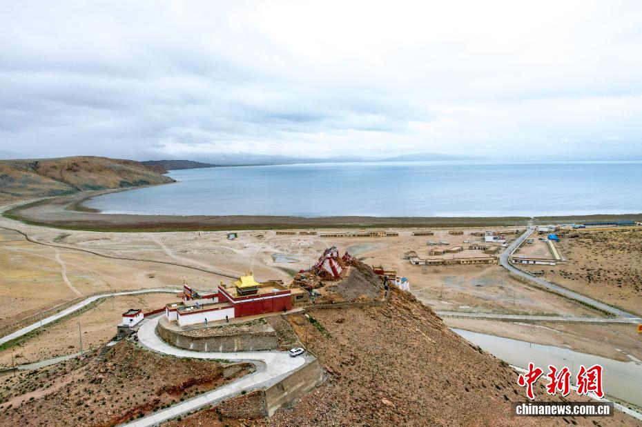7月22日,從吉吾寺上空航拍瑪旁雍錯(cuò)?,斉杂哄e(cuò)與拉昂錯(cuò)位于西藏阿里地區(qū)普蘭縣境內(nèi),兩湖僅有一堤之隔,卻擁有不同的地理特征和咸淡水之分,因而分別被譽(yù)為“圣湖”與“鬼湖”。(無(wú)人機(jī)照片)中新社記者 張祥毅 攝