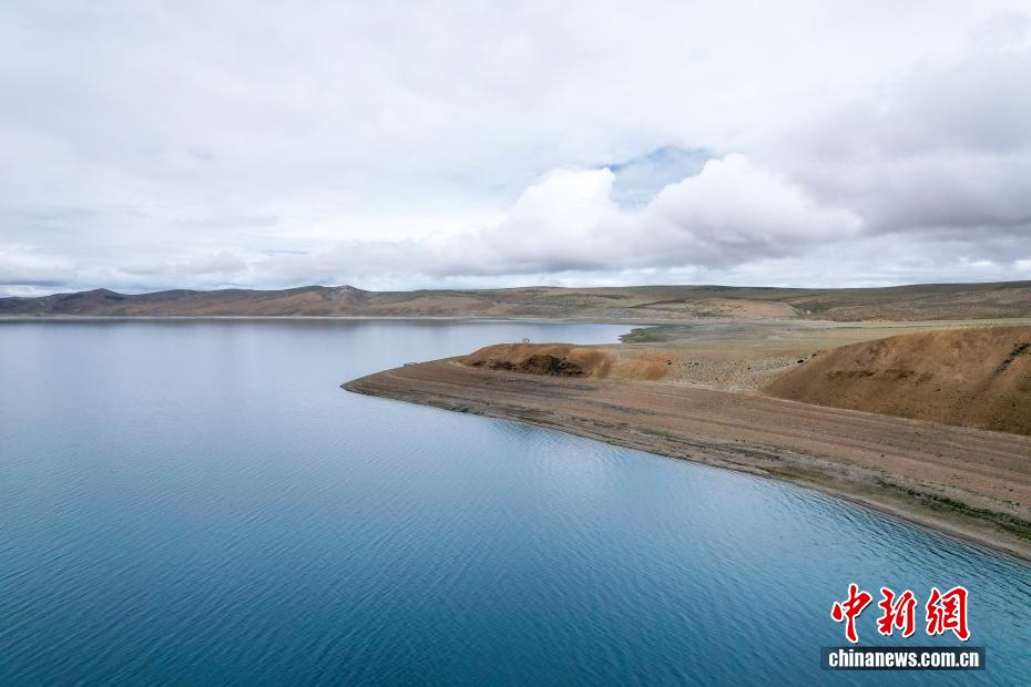 7月22日,航拍拉昂錯(cuò)夏日風(fēng)光。瑪旁雍錯(cuò)與拉昂錯(cuò)位于西藏阿里地區(qū)普蘭縣境內(nèi),兩湖僅有一堤之隔,卻擁有不同的地理特征和咸淡水之分,因而分別被譽(yù)為“圣湖”與“鬼湖”。(無(wú)人機(jī)照片)中新社記者 張祥毅 攝