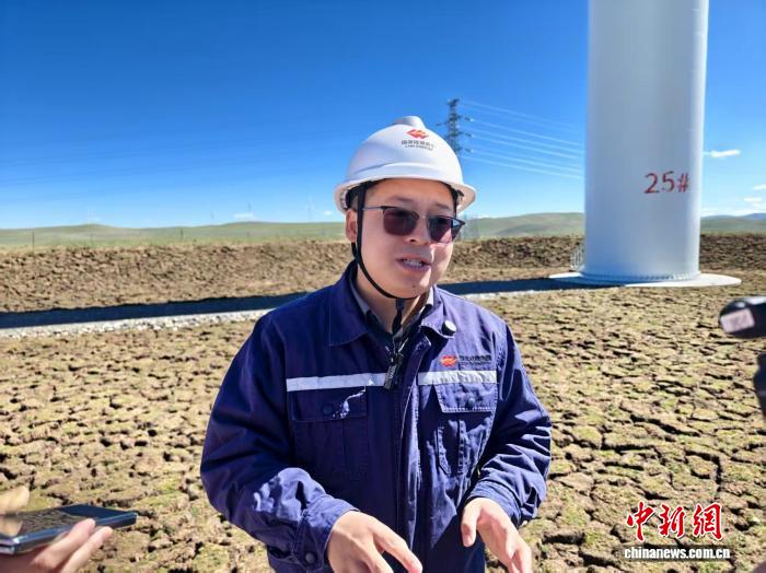7月17日,“輝煌60載 魅力新西藏”集中采訪活動中,田江偉介紹歐瑪亭嘎100兆瓦風電項目建設情況。中新社記者 程小路 攝
