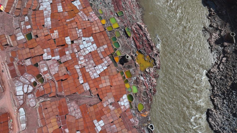 瀾滄江畔的千年鹽田。井鹽曬制技藝被列入國家級(jí)非物質(zhì)文化遺產(chǎn)名錄。新華社記者 黨黎 攝