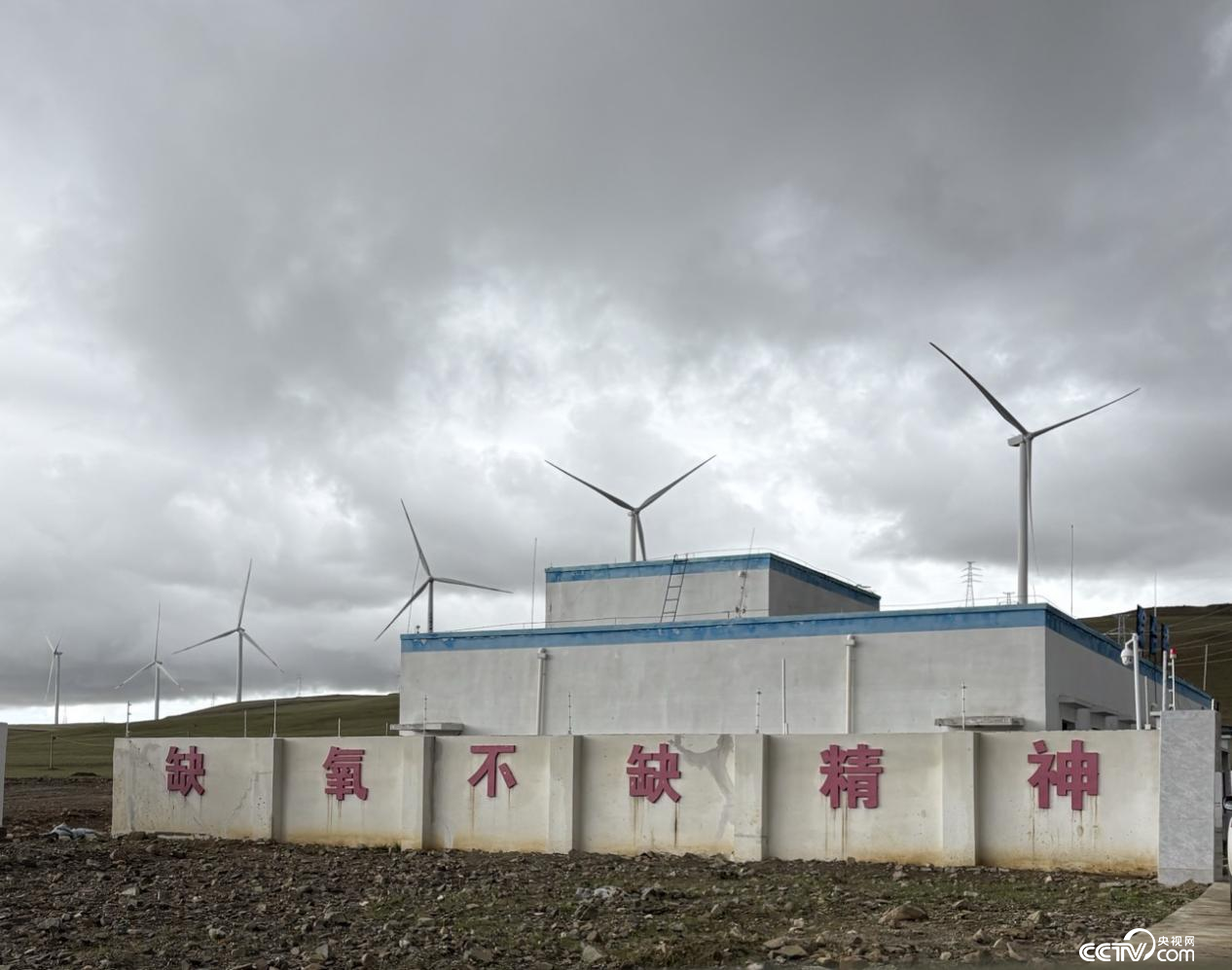 在哲古草原,巨大的風(fēng)機(jī)葉片緩緩轉(zhuǎn)動(dòng),劃破長(zhǎng)空。這里是三峽措美哲古風(fēng)電場(chǎng)——全球海拔最高的在運(yùn)行風(fēng)電場(chǎng),墻上“缺氧不缺精神”的標(biāo)語,正是技術(shù)突破與綠色發(fā)展的信念的最好寫照。