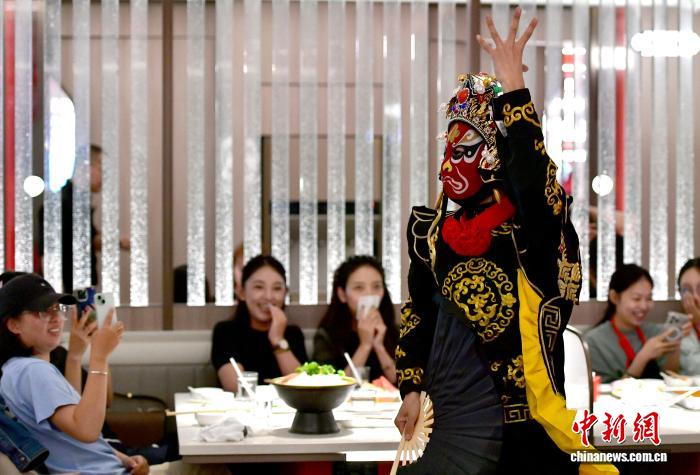 8月4日,西藏拉薩一餐飲店,服務(wù)人員現(xiàn)場表演。近年來,隨著一批涵蓋了零售、餐飲、休閑娛樂等各大領(lǐng)域的品牌首店在拉薩開業(yè),為當(dāng)?shù)孛癖妿碇T多新鮮體驗(yàn)的同時(shí),也促進(jìn)了城市消費(fèi)升級(jí)。圖為變臉表演。中新社記者 李林 攝