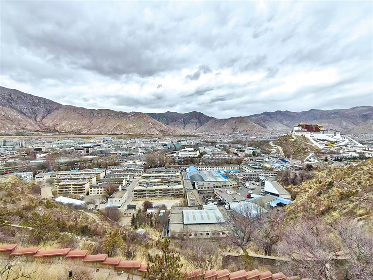 站在藥王山觀景臺(tái)眺望,重獲新生的水系如綠色飄帶擁抱著布達(dá)拉宮。