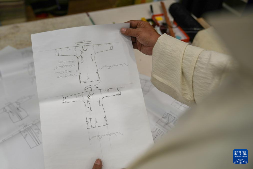 洛桑麥朗手繪的藏裝制作要領(8月15日攝)。新華社記者 晉美多吉 攝