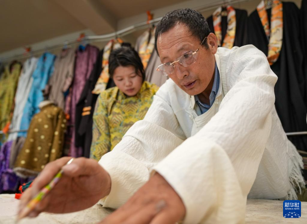 在拉薩雪堆白傳統(tǒng)手工藝術學校,60歲的西藏自治區(qū)級非物質(zhì)文化遺產(chǎn)項目藏族服飾(拉薩服飾)代表性傳承人洛桑麥朗,與學徒一道研究、制作藏裝。從藝四十余載,他培養(yǎng)了百余名弟子,還參與編撰教材、建立藏族服飾數(shù)據(jù)庫等工作。在他的巧手下,新式藏裝將傳統(tǒng)與現(xiàn)代交融,讓非遺技藝與現(xiàn)代審美碰撞,成為街頭一道靚麗的風景。