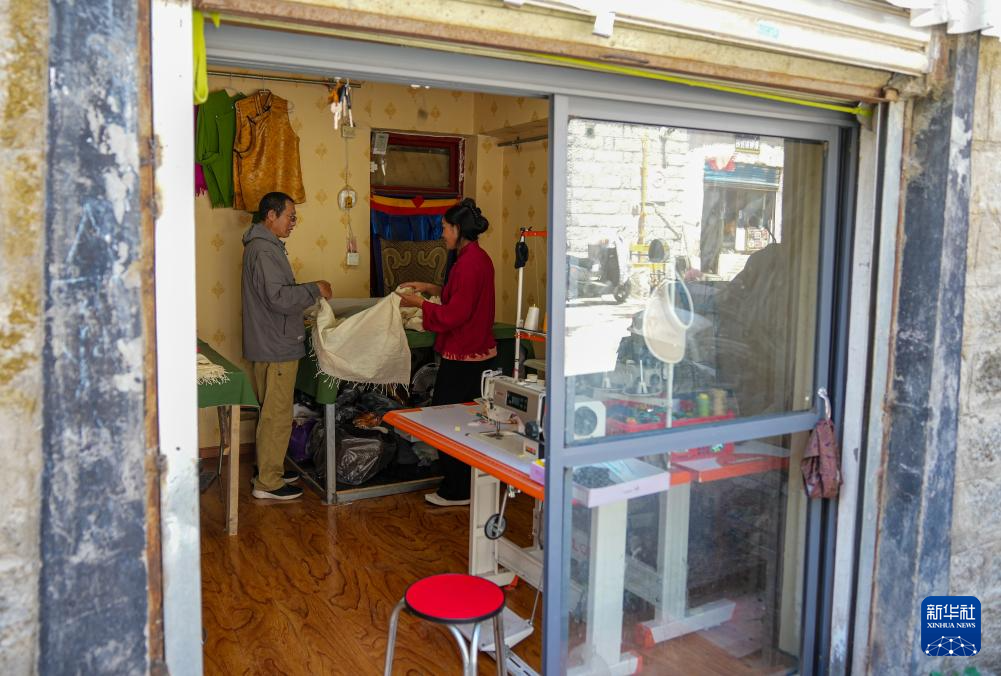 洛桑麥朗在檢查做好的藏裝(8月15日攝)。新華社記者 晉美多吉 攝