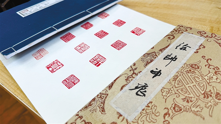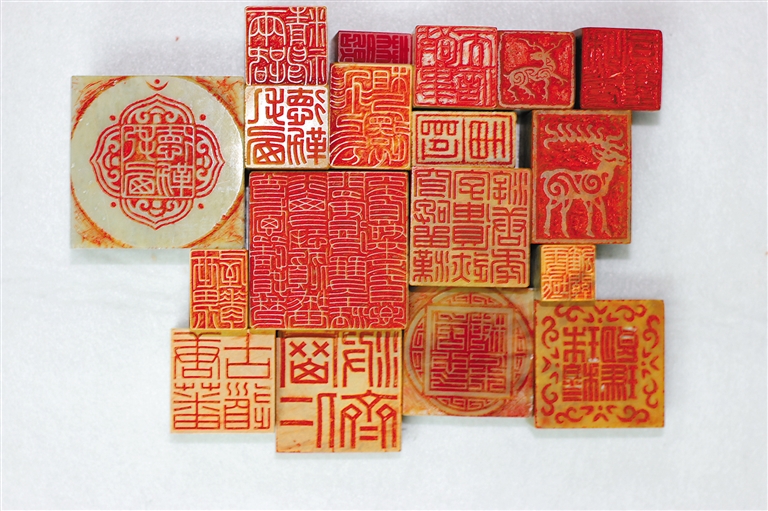 徐帥展示已完成的“西藏自治區(qū)成立60周年”篆刻藝術作品。