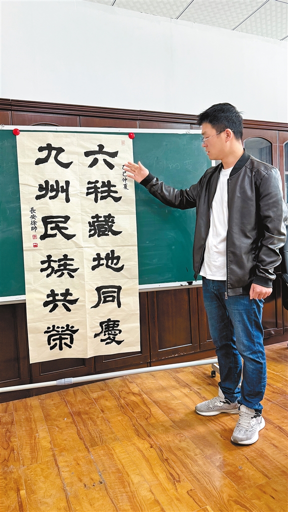 作為西藏自治區(qū)青年聯(lián)合會委員、西藏自治區(qū)青年書法家協(xié)會理事,徐帥的作品多次獲獎,但他更珍視的是傳承的意義。他在校園開設書法篆刻工作室,教藏族同學刻自己的名字印章,也向當地藝人請教藏文篆刻技巧。如今,這位即將畢業(yè)的碩士研究生,最大的愿望是舉辦一場個人篆刻藝術展。
