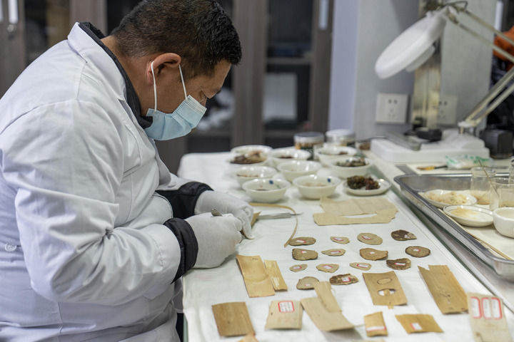“貝葉經(jīng)修復(fù)技術(shù)在全世界沒有統(tǒng)一的標(biāo)準(zhǔn),也沒有具體的修復(fù)流程。我們是一步步探索和創(chuàng)新,才取得了重要突破?!辈歼_(dá)拉宮管理處文保科工作人員冷本凱介紹說。