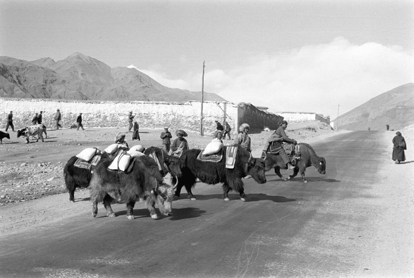 1984年1月,西藏堆龍德慶縣(現(xiàn)為堆龍德慶區(qū))的牧民用牦牛把飼料馱回家。新華社記者 徐澎 攝