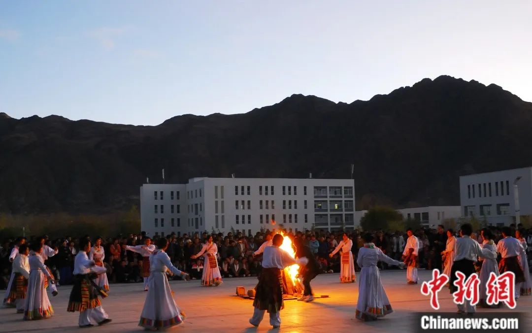 圖為學(xué)校舉行“增強民族團結(jié)、共建和諧校園”主題篝火晚會。西藏大學(xué)供圖