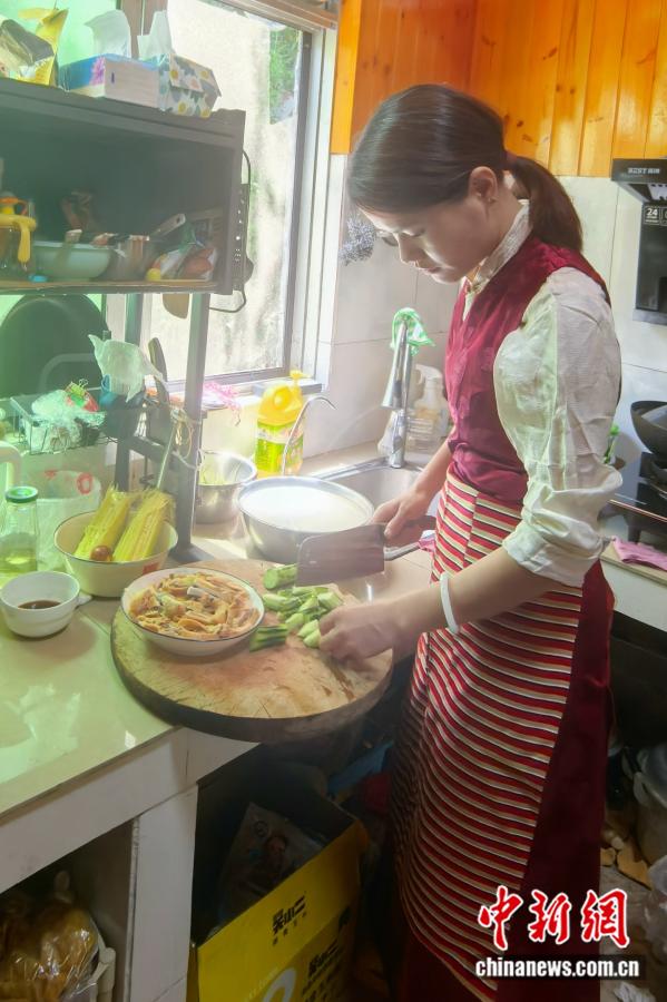 這種交融,也悄然浸潤著兩個(gè)女兒的成長。家里的餐桌永遠(yuǎn)擺著酥油茶和豆?jié){,藏裝與漢服常一起晾在陽臺(tái)。藏歷新年,丈夫教女兒插青稞穗;春節(jié),她帶女兒貼春聯(lián)。幼兒園讓畫“最喜歡的場(chǎng)景”時(shí),大女兒畫了一群不同民族的孩子圍著石榴樹拉手笑:“這是墨脫,我們都是一家人,像石榴籽一樣!”