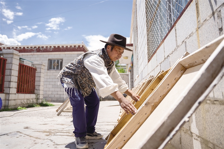 8月13日,記者來到尼木縣普松鄉(xiāng)曲水村的一個院落,58歲的斯曲正在窗邊埋頭雕刻,刻刀飛轉(zhuǎn)游走間,精致的花紋在木板上慢慢展現(xiàn),很快雕刻作品便初具雛形。作為普松雕刻第六代傳承人,斯曲自12歲起就在爺爺和爸爸的教導(dǎo)下開始學(xué)習(xí)這門手藝,如今的他早已成為普松雕刻自治區(qū)級非物質(zhì)文化遺產(chǎn)代表性傳承人。斯曲介紹,普松雕刻步驟煩瑣、工具講究,根據(jù)圖案復(fù)雜程度不同,耗時從6小時到3個月不等,十分考驗(yàn)雕刻者的耐心。