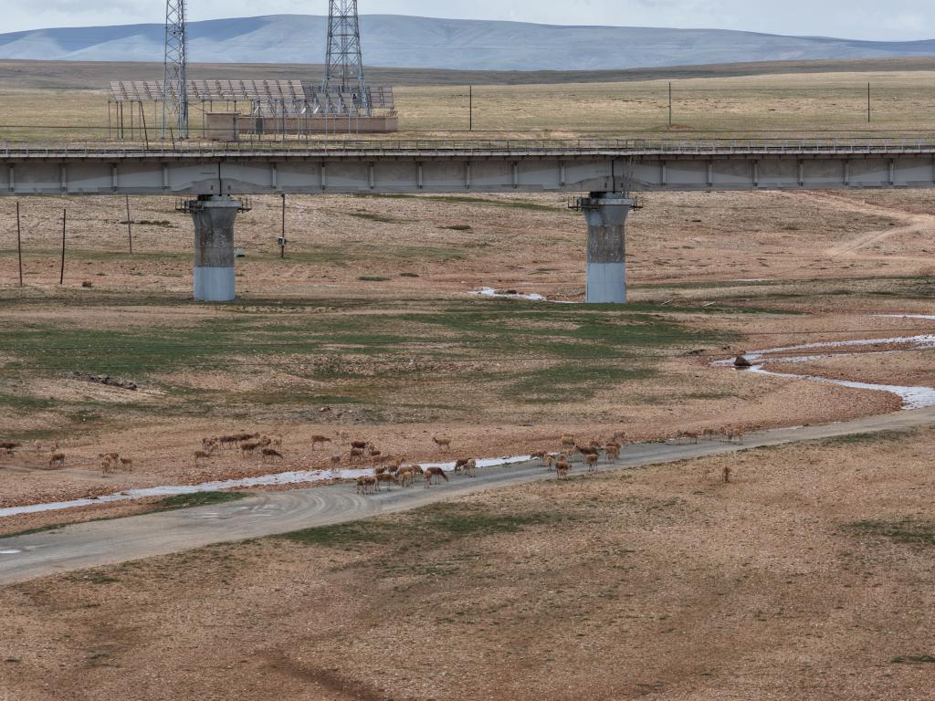 2025年8月14日,在可可西里拍攝的回遷中的藏羚羊。新華社記者李占軼 攝