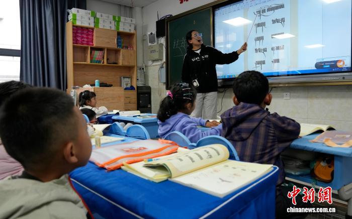 9月1日,拉薩市第一小學(xué)一年級(jí)二班,藏語(yǔ)文老師扎西央欽正在授課。近日,西藏拉薩市秋季學(xué)期開學(xué),各項(xiàng)教學(xué)工作有序開展。中新社記者 李林 攝